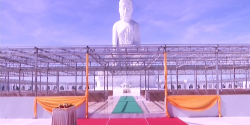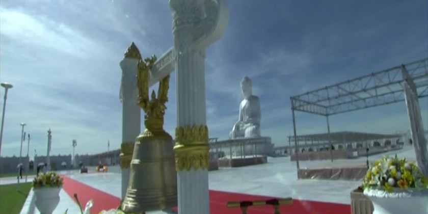 The Vijayabuminimmana auspicious groundwas established on the opposite site of the Maravijaya Buddha Image at theBuddha Park with the enshrinement ofthe pieces of grounds taken from 7 significant sites of Buddhagaya in India and 35 sites of prominent pagodas across the country and the Saddadhipati great bell made of 738 visses of brass which is 5 feet height and 4 feet and one inch of mouth is donated by the family of the Leading Donor SAC Chairman, Prime Minister and wife with the aims of showing the flourishing of Theravada Buddha Sasana to the world, shaping Myanmar as a focal point of Theravada Buddhism, ensuring the prosperity of the State, and ensuring peace and prosperity in the world.