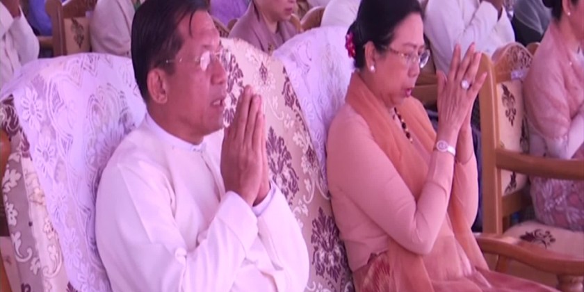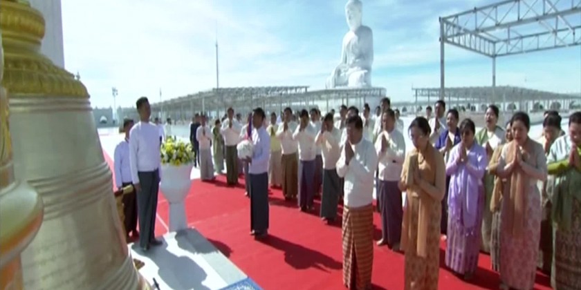 Together with the Leading donor of the Buddha Image and the Chairman of the State Administration Council Prime Minister Senior General Min Aung Hlaing, wife DawKyuKyuHla, Council Deputy Chairman, Deputy Prime Minister Vice Senior General Soe Win and wife Daw Than ThanNwe, Council Secretary and wife, Council Joint-Secretary and wife, Council members and their wives, Chief of General Staff (Army, Navy, Air) and wife, Chairman of Nay Pyi Taw Council and wife, Tatmadaw Senior officials and wives, Commander of Nay Pyi Taw Command and officials attended. After opening the ceremony, the congregation led by the Prime Minister and wife recited the Ratanattaya Gatha and two verses of Sabbasangahaka sending loving-kindness in unison.
