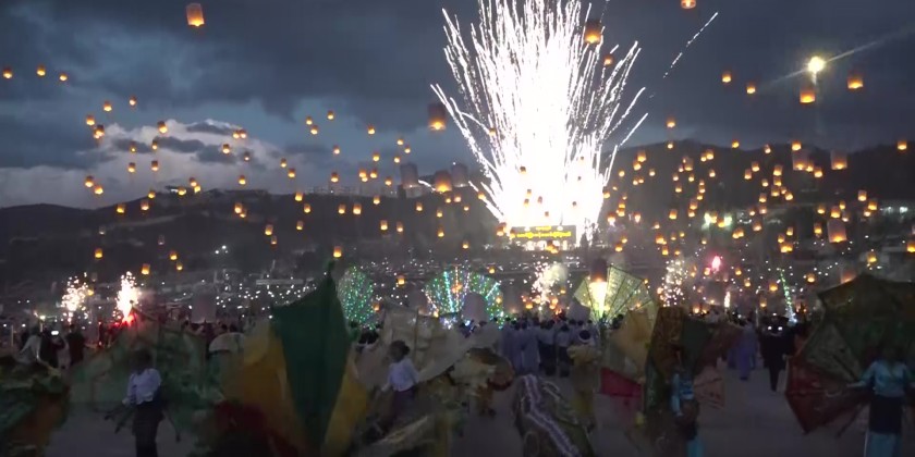 The opening ceremony of 2025 Tazaungdaing Hot Air Balloon Festival was held at Awaiya Ground on 29th October in grand scale. First, Shan State Chief Minister U Aung Aung and his wife together with the Commander of Eastern Command, State Advocate General and many other concerned officials offered flowers, water and oil lamps to Sulamuni Lawka Chantha Pagoda.