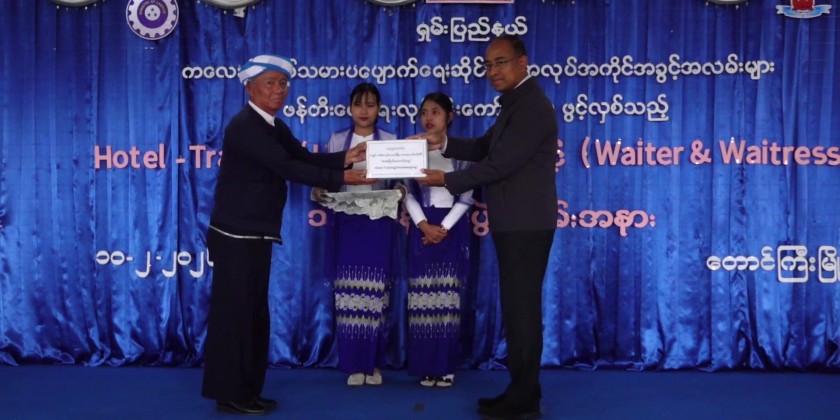 Shan State Chief Minister U Aung Aung, together with the State High Court Chief Justice, State Ministers, the State Advocate General, and responsible officials, attended and presided over the opening ceremony of the Hotel-Training (Housekeeping) and (Waiter & Waitress) courses organized by the Shan State Committee for the Elimination of Child Labor and Creation of Employment Opportunities, were held at the Community Center in Taunggyi on February 10.