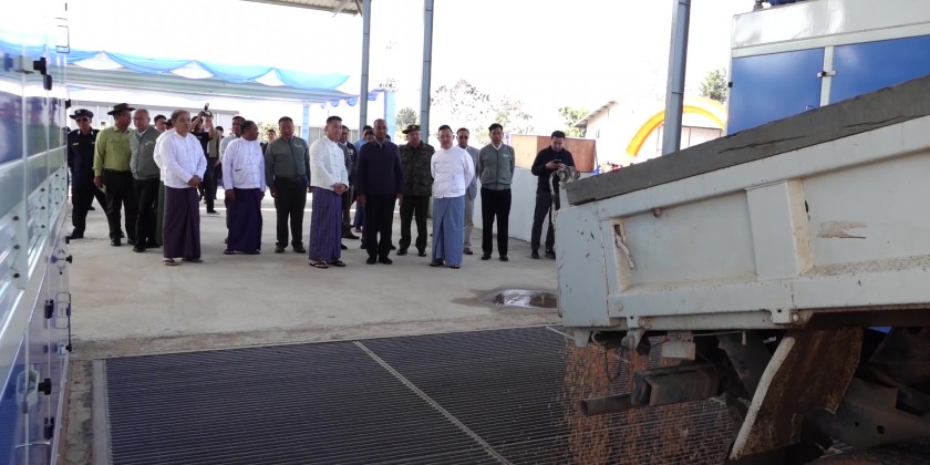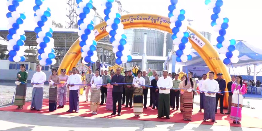 Afterwards, the DE Infinity 999 Corn Drying Factory was officially opened with a ribbon-cutting ceremony performed by Shan State Chief Minister U Aung Aung and officials. The Chief Minister, State Ministers, the State Advocate General, and officials then toured the factory.