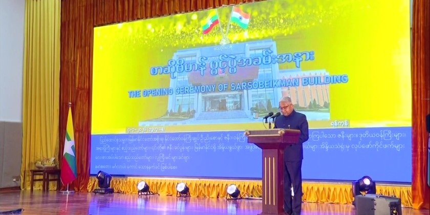 The Indian Ambassador also made speech, commemorating the opening of the new building. The Sarso Beikman building is being constructed on a 2.18-acre site in Mingalataungnyunt Township in Yangon Region, on land owned by the Forest Department under the Ministry of Natural Resources and Environmental Conservation.