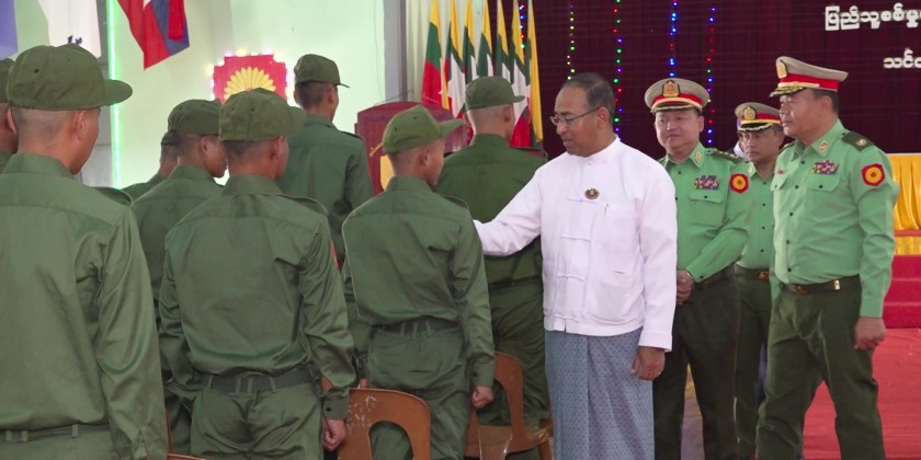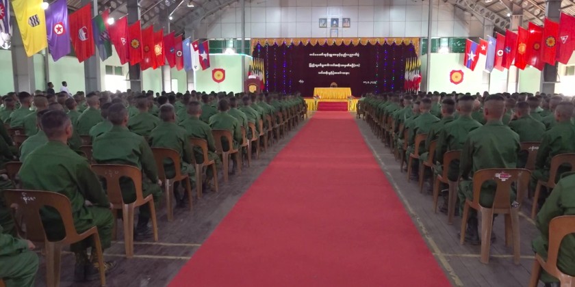 The opening ceremony of the People’s Military Service Training Course No. (11/2025) was held at the parade ground of the Tatmadaw Computer and Technological Institute (MCTI) in Hopong Township, Pa-O Self-Administered Zone, Shan State (South). The event was attended by Shan State Chief Minister U Aung Aung, the institute’s commandant Brigadier General Thant Htin Soe, the state minister for Security and Border Affairs, the Chairman and members of the Pa-O Self-Administered Zone Administrative Body, senior military and civil officials, departmental representatives, members of War Veteran Association, and other responsible personnel.