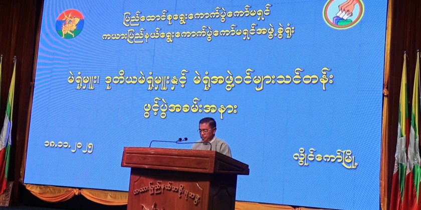 The opening ceremony for the training of polling station officers, deputy officers, and polling station members who will serve at polling stations in the upcoming multi-party democratic general election, which is being prioritized for successful holding within Kayah State, was held at the State Hall in Loikaw on November 18. State Chief Minister U Zaw Myo Tin attended and delivered the opening address.
