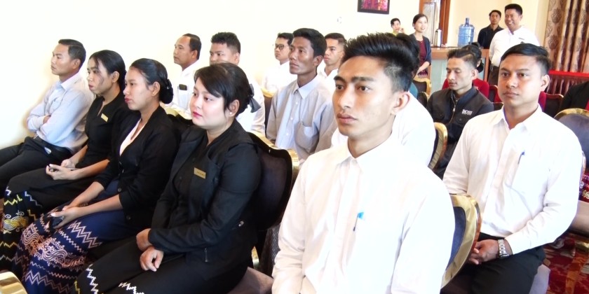 The opening ceremony for the Leadership and Service Capacity Enhancement Training for manager/supervisor level staff from hotels in the Union Territory Nay Pyi Taw was held at the Aureum Palace Hotel in Nay Pyi Taw on November 24. The Union Minister for the Ministry of Sports and Youth Affairs and the Ministry of Hotels and Tourism, Jeng Phang Naw Taung, attended and delivered an address.