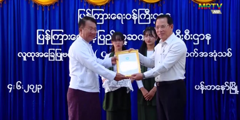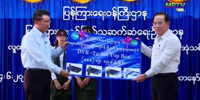 Afterward, Union Minister U Maung Maung Ohn provided MRTV Set Top Boxes for the local residents and local military stations and accepted the cash donation and returned the certificate of honor to the well wishers.