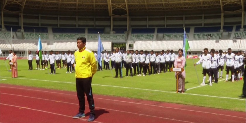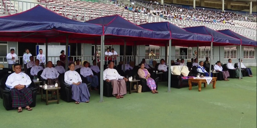 After reciting sports vows by the athletes, the SAC members, Union Minister Dr. Nyunt Pe and officials cordially greeted the athletes.Next, the SAC members, Union Ministers, Deputy Ministers and officials watched the Pom Pom dance of students from Meiktila Education Degree College and enjoyed the football competition.At the competition, the football team represented the Ministry of Cooperatives and Rural Development and the team of the Ministry of Natural Resources and Environmental Conservation played with all-out-effort and the MCRD team beat the team of MNREC with 7-1.