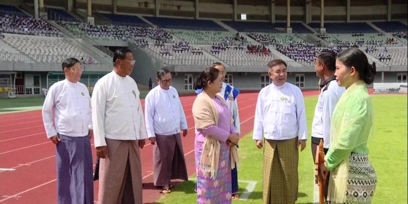Members of State Administration Council Daw Bwe Bu, Porel Aung Thein, Mann Nyein Maung, Dr. Hmu Htan, Dr. Ba Shwe, U Yan Kyaw, Union Ministers, Deputy Ministers, departmental officials, Rectors, Principals, teachers, invited guests attended the opening ceremony of 2024 Inter-Ministerial Universities Football Competition held at the Wunna-Theiddi football ground in Nay Pyi Taw in the afternoon on September 2nd.