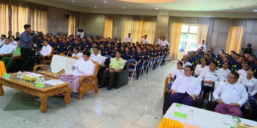After that, the Magway Region Chief Minister U Tint Lwin delivered his remarks. Subsequently, the Union Minister and the Chief Minister warmly met and greeted the trainees.
