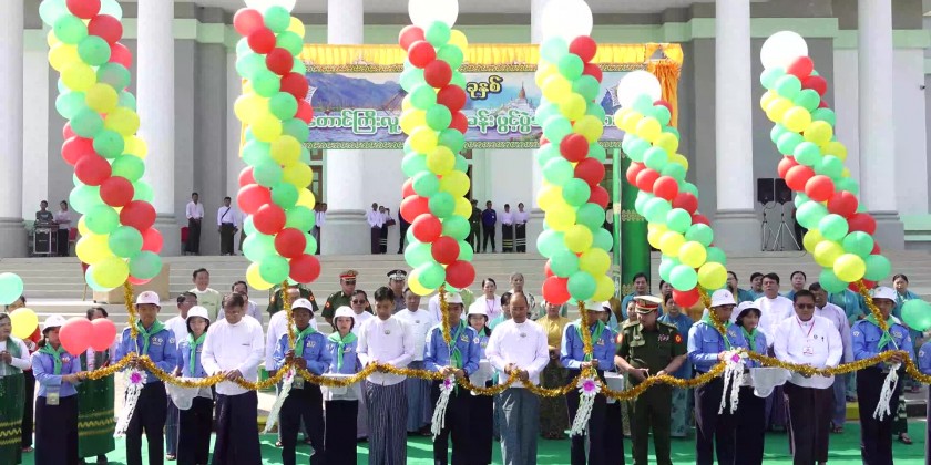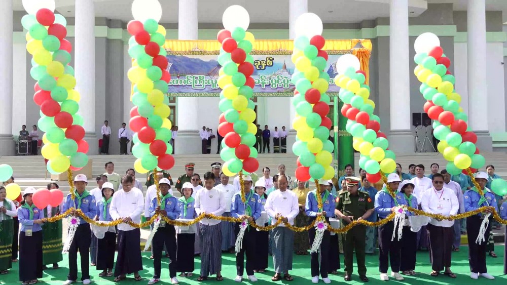 First, the Shan State Chief Minister U Aung Aung opened the signboard of 2024 Taunggyi Lu Yan Chun Camp by pressing the auto button and then Chief Minister, State Ministers, Director General of the Department of Advance Education and State education officer Deputy Director General opened the Taunggyi Lu Yay Chun Camp by cutting the ceremonial ribbon.