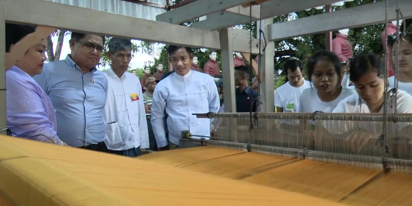 Subsequently, the festival was officially inaugurated with a ribbon-cutting ceremony performed by Venerable Dr. Uttama Siri, the State Chief Minister, the Commander, the State Minister for Ethnic Affairs, and the YMBA Secretary. They then toured the venue with interest, observing the Non-Stale Golden Lotus Robe weaving competition among the participating weaving associations, alongside local residents and traditional musical bands.