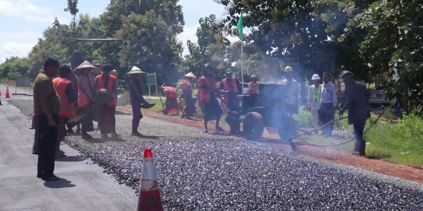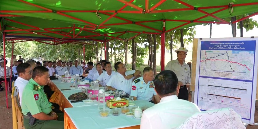 The Chief Minister and officials first visited a road construction project in Magway Township. The project, overseen by the Road Department's Supervision Team, involves widening the Tawnyo (Pantin)-Myothit-Kanpyar (Magway) road from 18 to 24 feet and resurfacing it with asphalt. At a temporary briefing hall, the director of the Road Department and other officials explained the project details. The Chief Minister provided necessary instructions and then met with local farmers from the Kanpyar village tract. He inquired about their needs for regional development and worked with them to address their concerns.