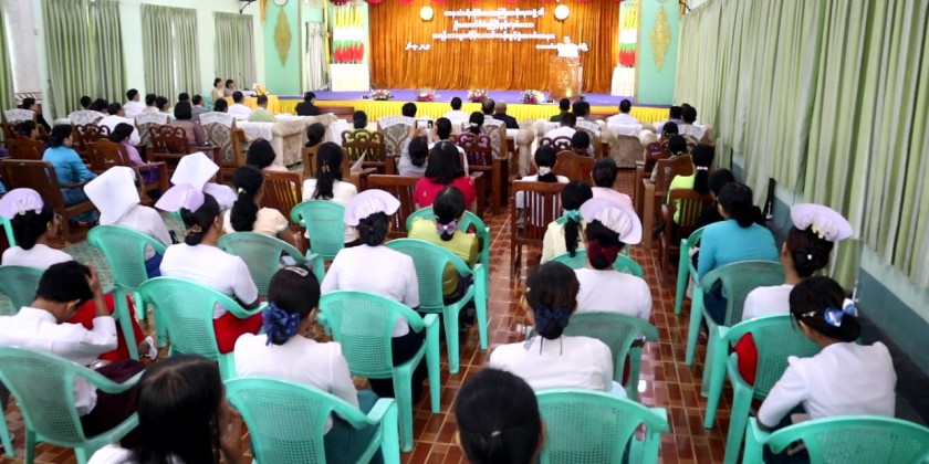 Next, the region medical service and public health head officer Dr. Aung Ngwe San clarified the purposes of opening auxiliary midwife training and the duties and functions of the auxiliary midwives. Then, the Chief Minister, Chief justice of region high court, region ministers, departmental officials and auxiliary midwife trainees took the documentary group photo.
