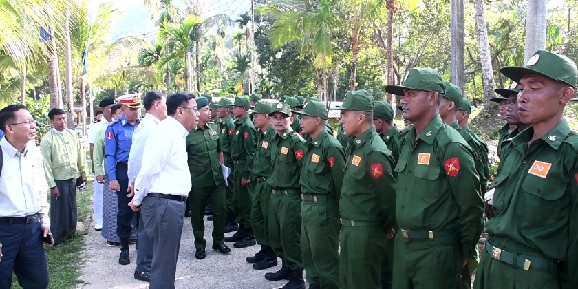 Tanintharyi Region Chief Minister U Myat Ko, along with Region Government Ministers and departmental officials, attended the opening ceremony of the People’s Military Service Training Course (Batch No. 12) held at the No. 57 Naval Training Base in Thingan Aw Village, Kyunsu Township, on April 22.