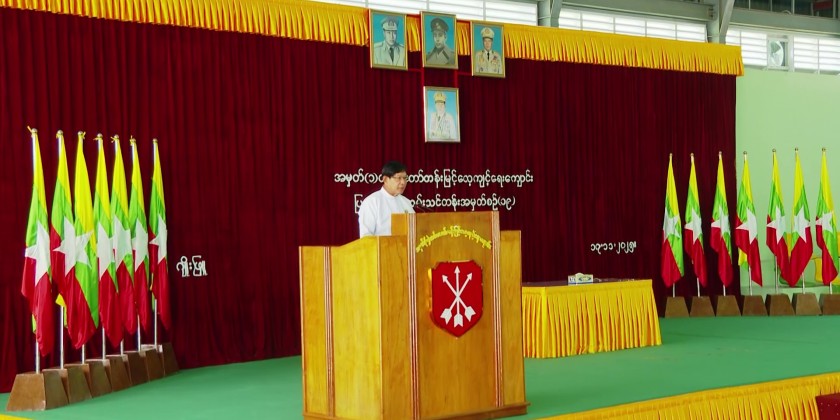 Subsequently, Chief Minister U Soe Thein, gave a speech and warmly greeted the trainee companies. The Chief Minister also presented refreshments and cash of honor, which were accepted by the commandant,