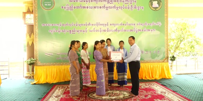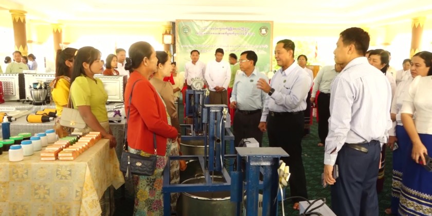 Following this, the Union Minister, Naypyidaw Council Chairman, and officials attended a ceremony at the Mahajanaka monastery in Tatkone Township, where they provided materials for small-scale industries and projects aimed at raising family incomes in rural areas, as well as certificates for completed training programs.