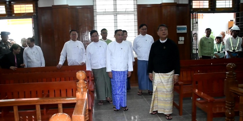 The Union Chief Justice U Tha Htay, in the morning on July 23rd, attended the opening ceremony of the new Kawthaung District and Township Courts building on Bogyoke Road, Aung Thu Kha Ward, Kawthaung, along with the Taninthayi Region Chief Minister U Myat Ko, Region High Court Chief Justice Daw Paik Paik Aye, Region Government ministers, and officials from the regional, District, and township levels.