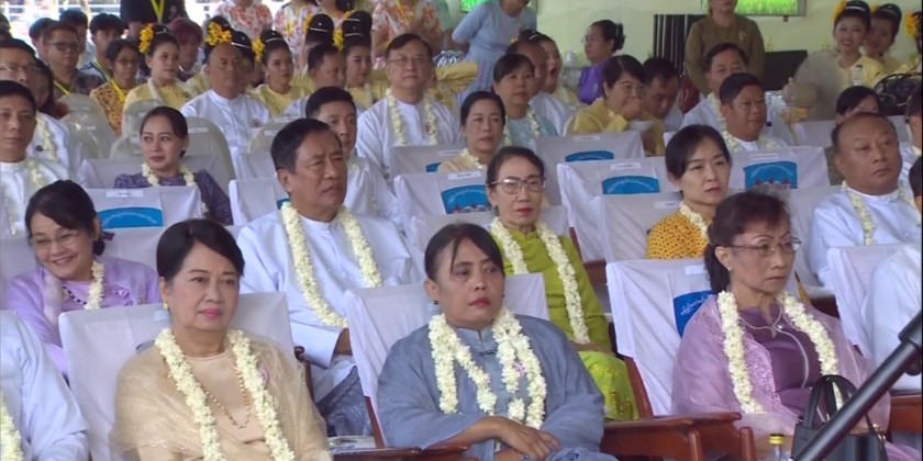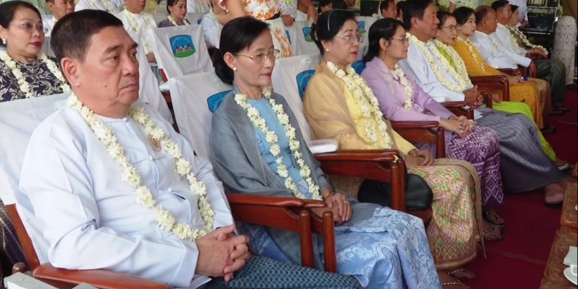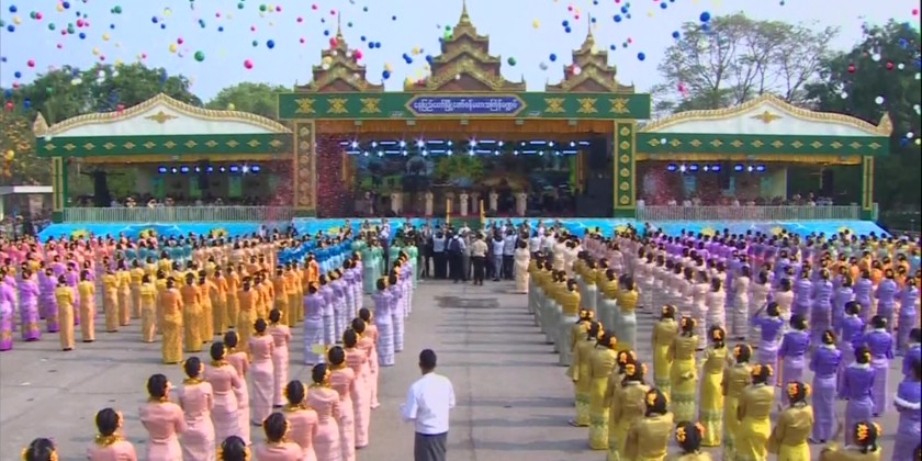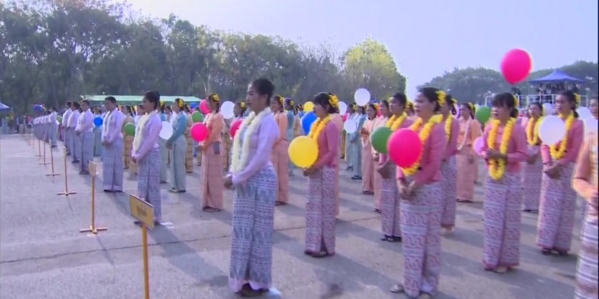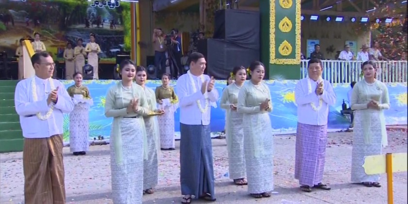 First, Takkatho Ar Mann from the Department of Fine Arts recited the "1387 Nay Pyi Taw City Mayor Thingyan Festival New Year Mingalr Paik Sone Ya-du or Auspicious Multi Stanza Poem." Then, the Chairman of the Nay Pyi Taw City Development Committee and Mayor U Kan Myint Than delivered a New Year greeting speech.