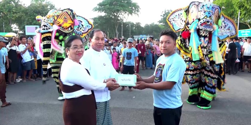 Members of the region government presented honorary awards and cash prizes to the Drum and Bugle group and Pom Pom dance group from No. 2 Agricultural, Livestock, and Basic Education High School for their assistance in the opening ceremony.