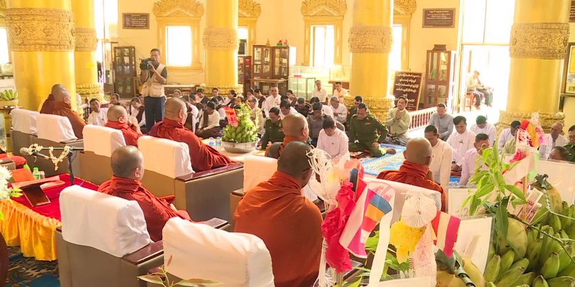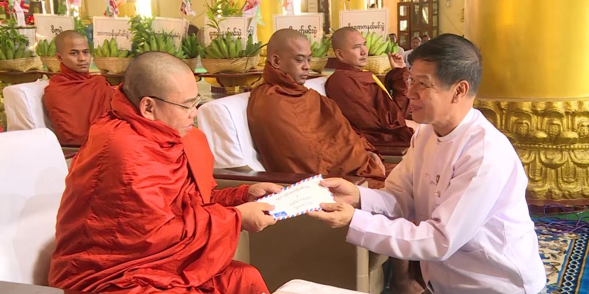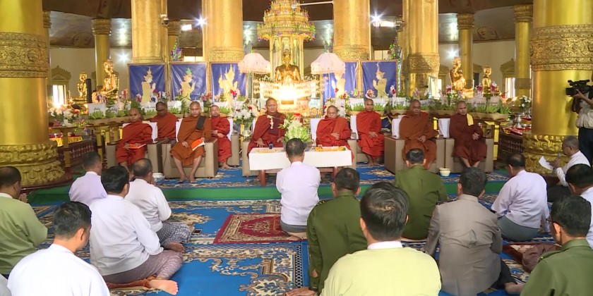 Organized by Mandalay Region Government, the opening ceremony of reciting Uppadasanti scripture was held at Gandakuti hall of the Tooth Relic pagoda on Mahadhammramsi hill of Amarapura Township in the morning on 22nd August and attended by members of Sangha, Mandalay Region Government Chief Minister U Myo Aung, Region Ministers and officials.