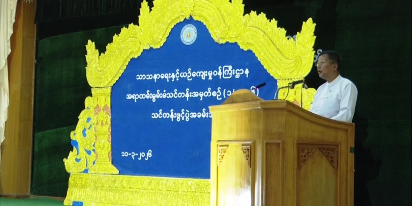Union Minister for Religious Affairs and Culture, U Tin Oo Lwin, attended and delivered the opening address. During the ceremony, the Union Minister delivered the opening speech stating that the trainees need to successfully implement the policies of the ministry.