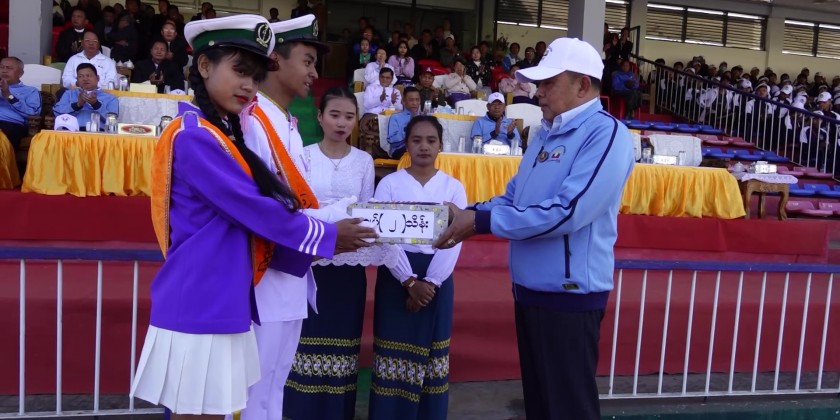 Next, the contestant football players recited the sports vows, the Chief Minister, Chief Justice of State High Court, State Ministers and officials greeted the players, members of judge jury, the Chief Minister U Aung Zaw Aye provided cash of honor to the drum corps and pom pom dance group.