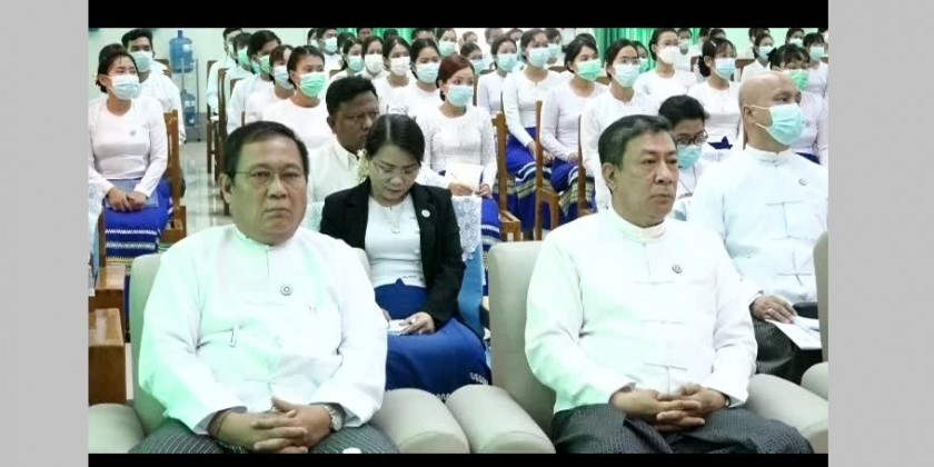 The Union Minister for Labour Dr. Pwint Hsan gave an opening remark at the opening ceremony of Professional and Advanced Excel training course (1/2023) and Pre workplace training (1/2023) held at the Headquarters of Social Security Board, Nay Pyi Taw in the morning on March 6.