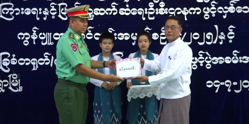 The opening remarks were delivered by Chief Minister U Myat Kyaw. Following that, Colonel Win Tin Soe, the Region Minister for Security and Border Affairs, donated 1.63 million kyats to Director of the Department for the implementation of the Computer and Language Courses.