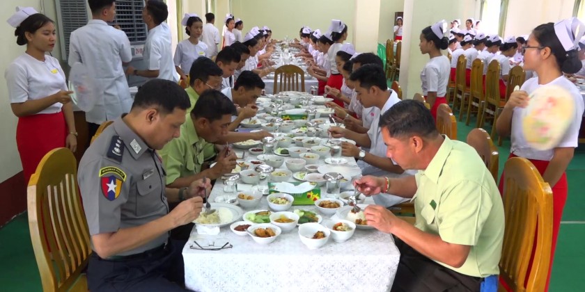 Later, the Chief Minister and officials attended a special lunch event held at the Monywa Nursing and Midwifery Training School, where they dined together with the school principal, faculty members, and trainees.