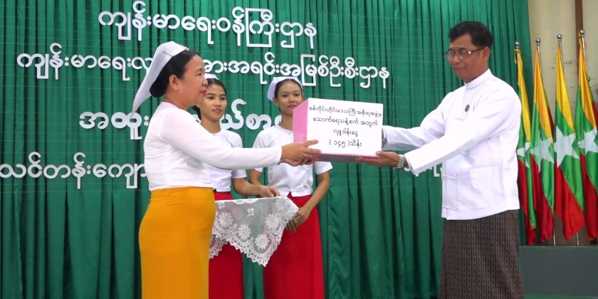 Additionally, Region Minister for Economic Affairs Daw Yi Yi Than donated 1 million kyats to the deputy principal for the school's needs.