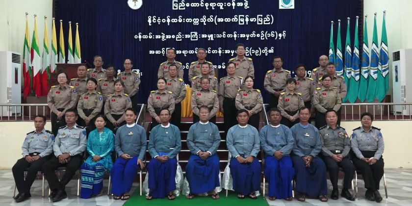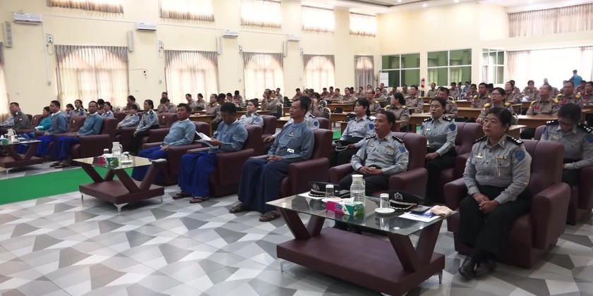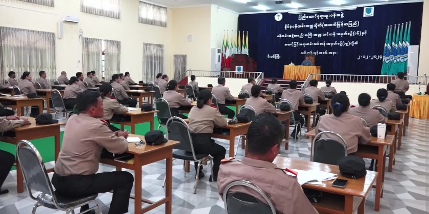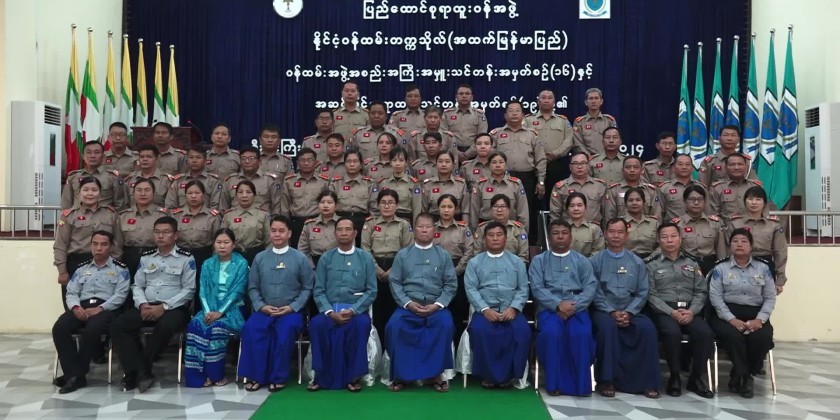 The opening ceremony of the Executive Level Official Training Course No. (16) and the Senior Level Officer Training Course No. (19) was held at the Nilar Hall and was attended by the Chairman of the Union Civil Service Board, U Aung Thaw, the Director-General of the Union Civil Service Board Office, the Rector of the Civil Service Academy (Upper Myanmar), the Pro-Rectors, faculty members of departments of Academy, invited guests, and trainees.