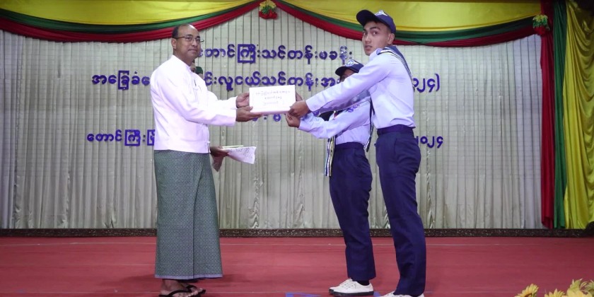 At the ceremony, Shan State Chief Minister U Aung Aung gave words of encouragement for the trainees of youth aviation training course.Next, the Chief Minister U Aung Aung and Commander of East Command MaJ-Gen Zaw Min Latt provided cash assistance for the basic aviation youth training course (Taunggyi Training Camp), the trainees and training instructor accepted the assistance and the training instructor officer Captain Min Thet Maung clarified the subjects to be lectured at the training.