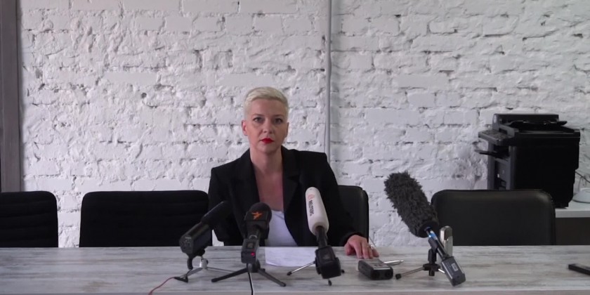 The top opposition candidate in Belarus' presidential vote said on Tuesday that she has left for Lithuania and called on her supporters to end demonstrations. A former teacher and political novice apologized to her supporters in a video statement and said it was her own choice to leave the country.