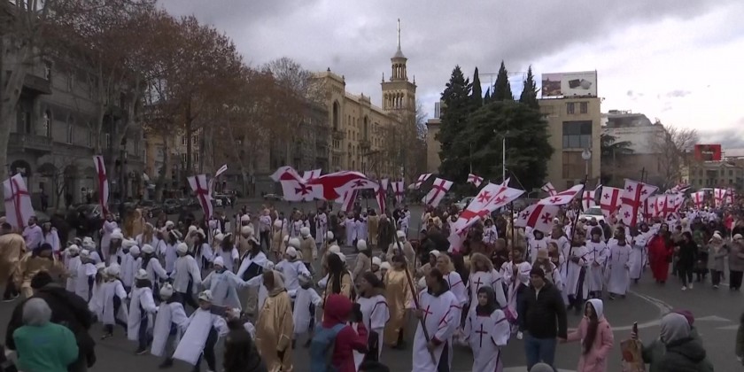 Hundreds of Georgians marched through the streets of the capital Tbilisi on Saturday in a traditional charity procession on Orthodox Christmas day. During Soviet times, Alilo, as well as the celebration of Christmas, was banned. The tradition was restored only in 2000 and gained in popularity.