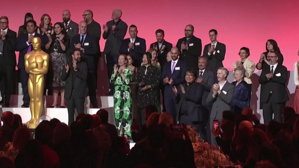 Oscar nominees in all categories were celebrated on Monday at the annual Academy luncheon. Actors Brad Pitt, Leonardo DiCaprio, Charlize Theron and Renee Zellweger were among the stars gathered for a group photo ahead of the Academy Awards ceremony. Dozens of producers, editors, costume designers, documentary makers and musicians were also among those attending the annual Oscar nominees luncheon. The Oscars will be awarded in Hollywood on Feb 9.