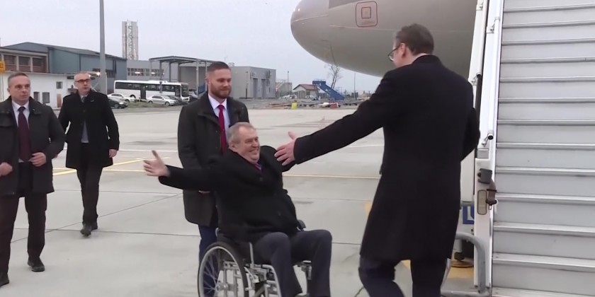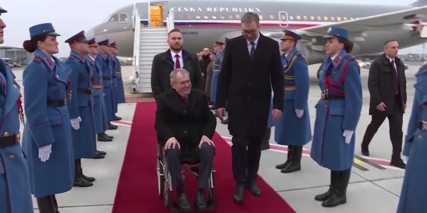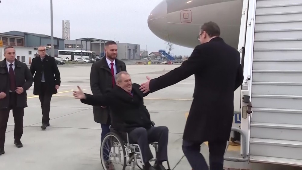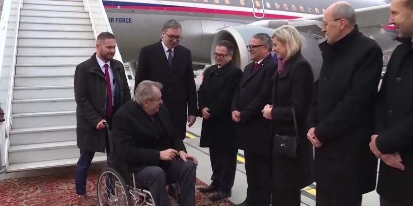 Outgoing Czechia President Milos Zeman arrived Sunday to Belgrade for two day visit. Zeman was greeted at Belgrade airport by Serbian President Aleksandar Vucic. Zeman, who took office in March 2013, was the country's first president elected by popular vote. His second and final five-year term expires in March. Lawmakers elected the previous two presidents, Vaclav Havel and Vaclav Klaus.