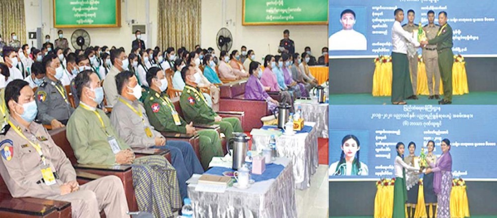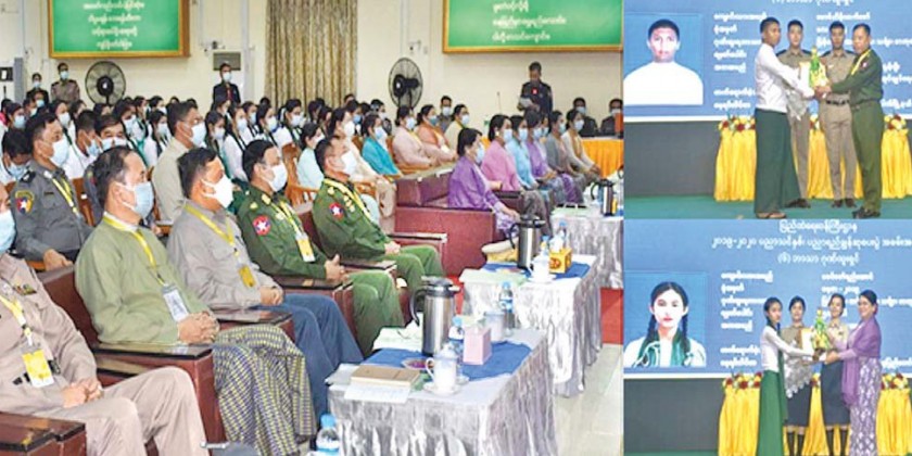 At the ceremony, the member of state administration council, union minister for home affairs and wife, deputy ministers and their wives, permanent secretary and wife, director generals and wives presented education outstanding awards to the offspring of the staff members of forces and departments under the ministry of home affairs and who passed the matriculation examination with four distinctions and above in 2019-2020 academic year and providing educational assistance for 2020-2021 academic year to the offspring of the staff members of forces and departments.