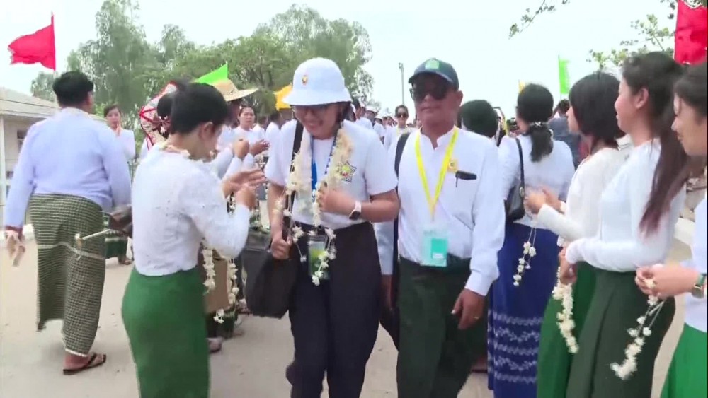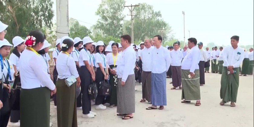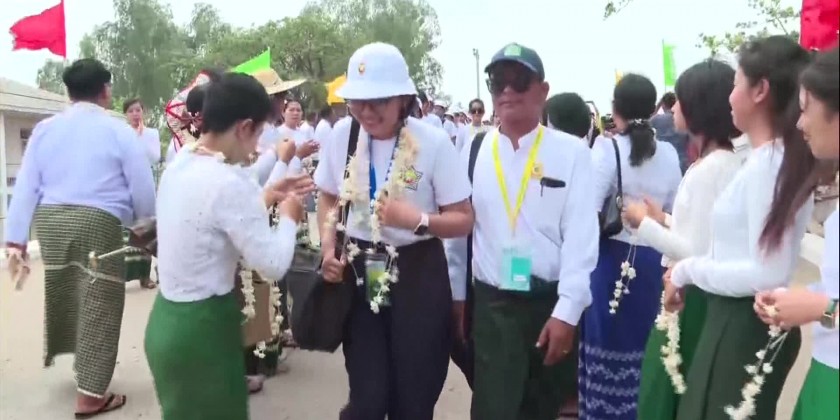 A total of 554 outstanding students for the 2023-2024 academic year included 140 Grade-9 students, 140 Grade-10 students, 137 Grade-11 students and 137 Grade-12 students who will join the Bagan, Inlay, Ngwehsaung and Chaungtha outstanding student camps and 64 supervisors and teachers arrived at Nay Pyi Taw Central Camp (Ywataw)in the morning on Wednesday and were warmly welcomed by the Union Minister for Education Dr. Nyunt Pe, Deputy Ministers Dr. Zaw Myint and Dr. Moe Zaw Tun and Senior officials, teachers, students, Myanmar traditional drum troupes.