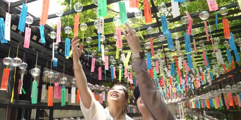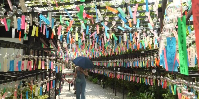 The soothing sounds of more than 10,000 wind chimes are providing relief from the heat at a temple in the southwestern Japanese prefecture of Fukuoka. Visitors to Mitsuidera temple in Tagawa City can enjoy the refreshing musical accompaniment through August 31.