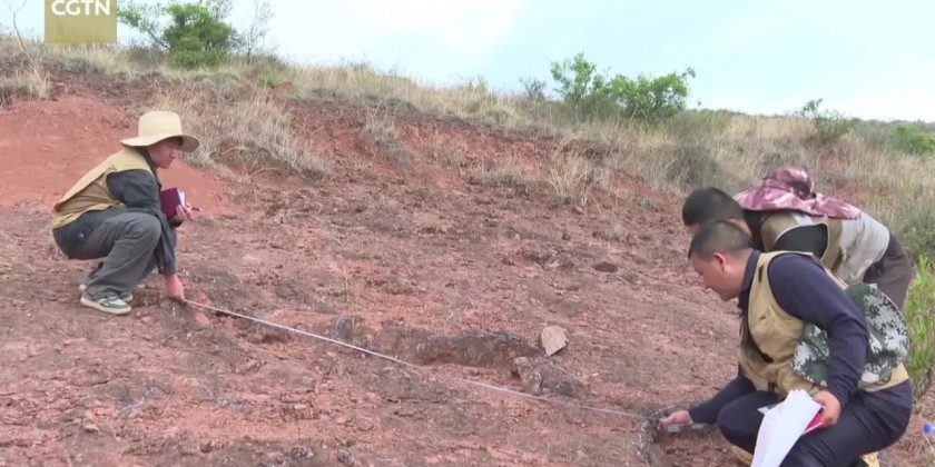 At Lufeng City in southwest China's Yunnan Province, paleontologists have found over 400 dinosaur footprints that date back 120 million years to the early Cretaceous period.