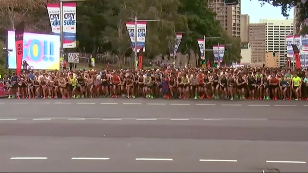 More than 80,000 people took part in Sydney's annual City2Surf race on Sunday with runner Harry Summers winning his third event in a time of 40.05 minutes, just two seconds need to reach the record time.