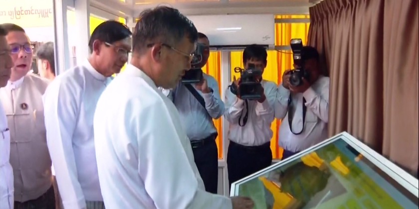 Yangon Region Chief Minister U Soe Thein expressed words of thanks to those who contributed to the installation of Pagoda Digital Directory, and the member of Botahtaung Pagoda Board of trustees explained the work processes.