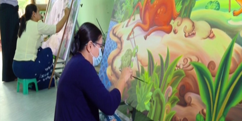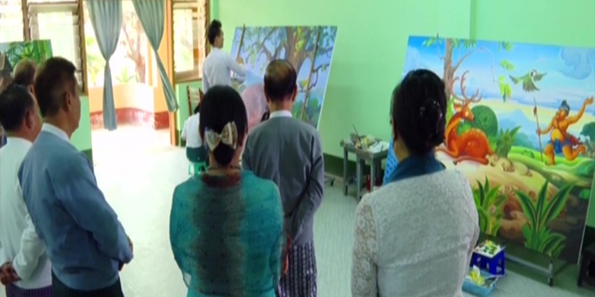 Out of 96, 32 oil paintings have been completed 100 percent for the 1st time. For the 2nd time, 32 paintings are being drawn at the National University of Arts and Culture (Yangon), the State High School of Fine Arts (Yangon) and the Myanmar Arts Center.