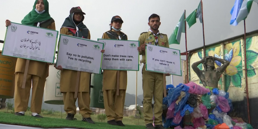 People took to the streets of Pakistan's capital on Saturday to celebrate World Environment Day, raising awareness for the protection of the planet. Vehicles decorated with trees, dustbins and statues covered with plastic bags drove through Islamabad. Prime Minister Imran Khan called on developed countries to generously provide financial support to climate-vulnerable developing countries, including Pakistan, to cope with the devastating consequences of climate change. Pakistan is the global host for World Environment Day, with this year's message aiming to highlight the importance of the 'Ecosystem Restoration' theme.