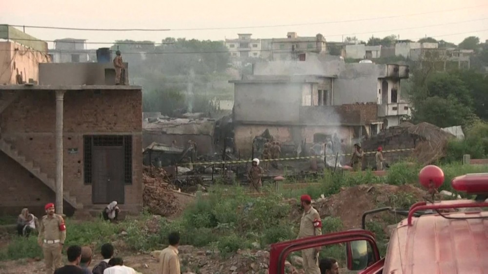 A Pakistani military aircraft on a training flight crashed in a built-up area in the garrison city of Rawalpindi early on Tuesday killing all five crew members and 12 civilians. A statement from the Pakistani military said the aircraft was on a routine training flight when it crashed but there was no immediate word on the cause of the accident.
