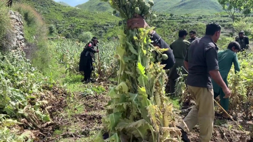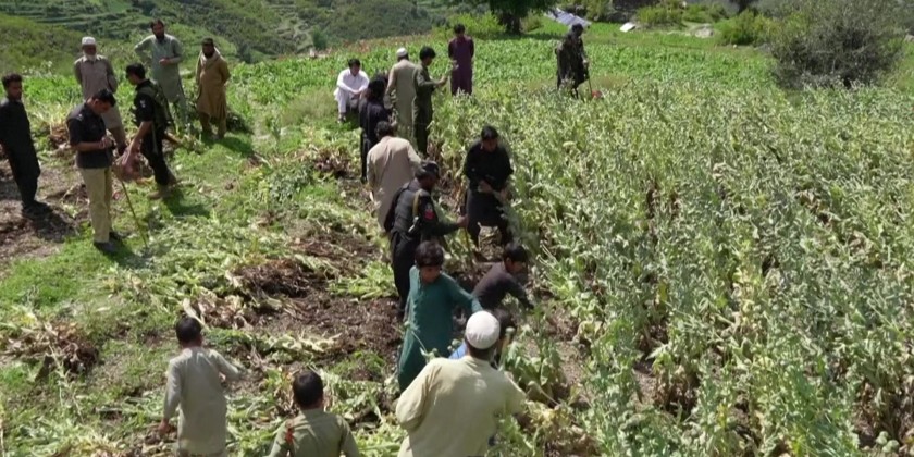 Pakistani police destroyed opium poppy plantations spanning approximately six hectares in the northwestern Mohmand. The operation aimed to curb narcotics production in the area. Authorities said the operation took place in the Shagai area, covering around 60,700 square metres.