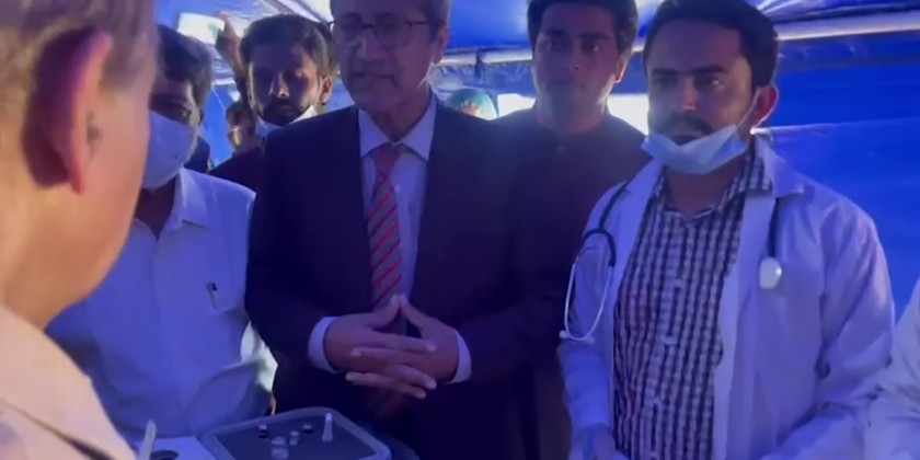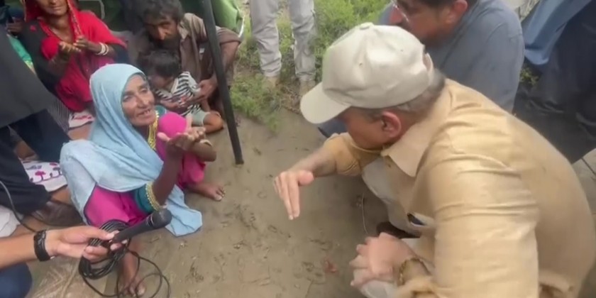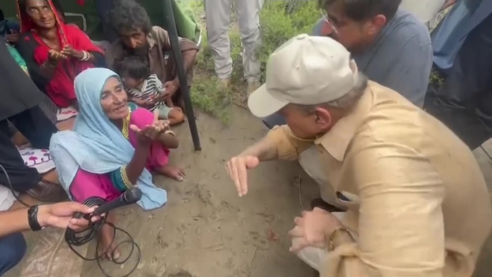 Pakistani Prime Minister Muhammad Shehbaz Sharif toured the flood-hit Sindh province and met with displaced people at a relief camp.