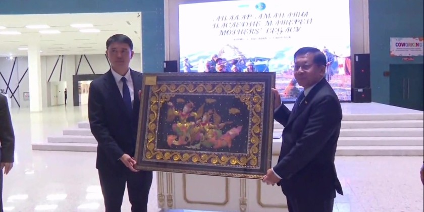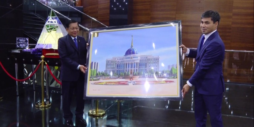 At the invitation of the President of the Republic of Kazakhstan Mr. Kassym-Jomart Tokayev, the Acting President of the Republic of the Union of Myanmar, Chairman of the State Security and Peace Commission, Senior General Min Aung Hlaing, who is currently in Astana, Kazakhstan, along with the accompanying high-level delegation members, visited and studied the Palace of Peace and Reconciliation and the National Museum in the afternoon on September 28.