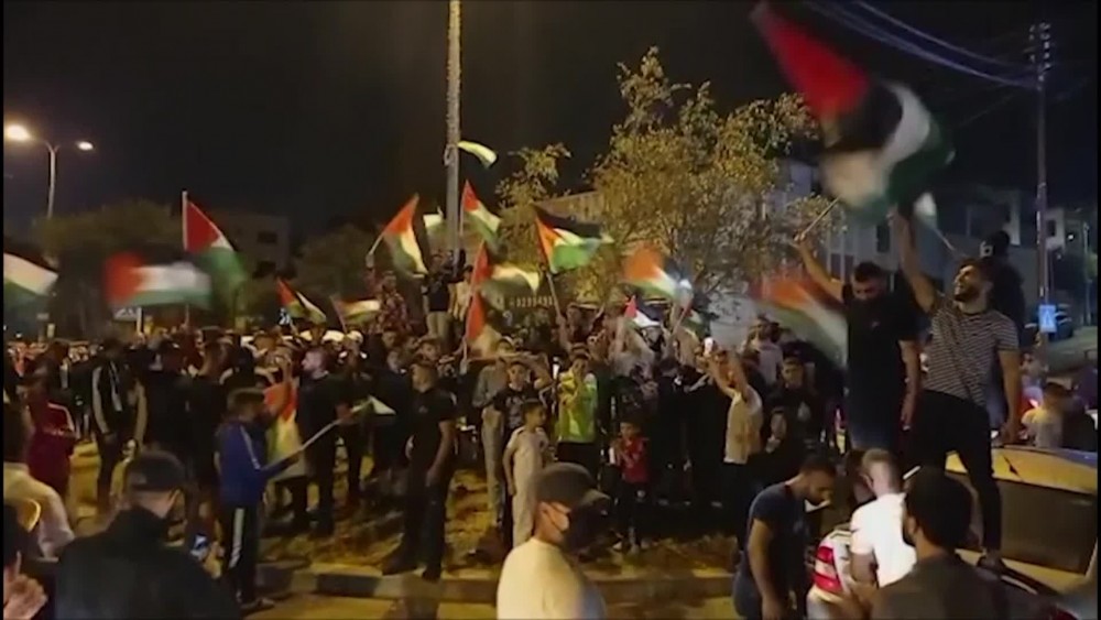 Palestinians in the East Jerusalem neighbourhood of Beit Hanina on Friday gathered to celebrate as a ceasefire between Israel and Hamas came into effect. Firecrackers lit the sky as people waved Palestinian and Hamas flags and honked their car horns. The ceasefire began at 0200 local time (2300GMT Thursday) after both Israel and Hamas accepted an Egyptian proposal to end the violence.