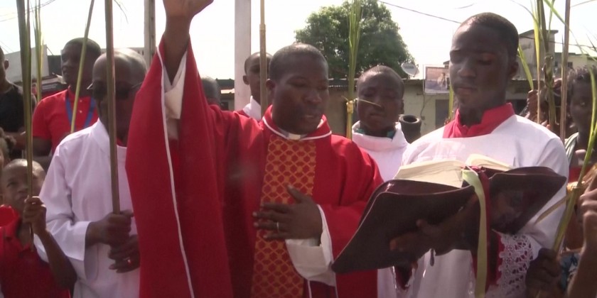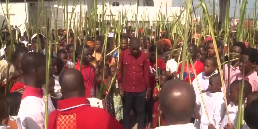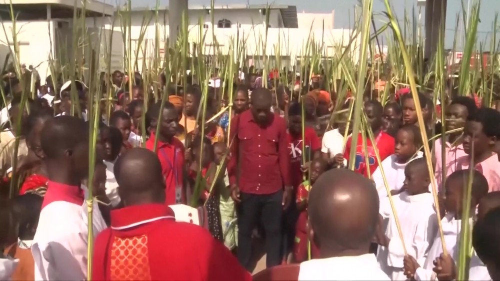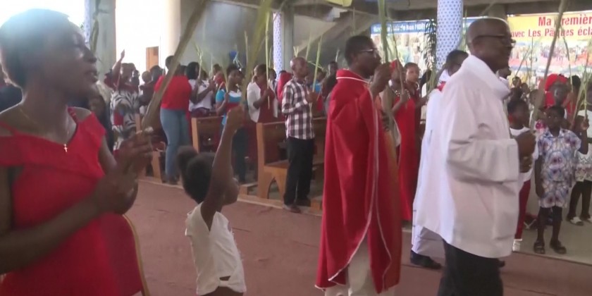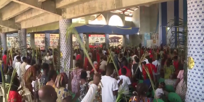 People holding palm fronds processed through the streets of Abidjan, Ivory Coast to celebrate Palm Sunday. Many also attended a Mass. The congregation prayed for peace and improved economic prosperity as well as thanking God for the recovery of Pope Francis, who was released from hospital yesterday. Christians make up 34 per cent of the population in the West African country.